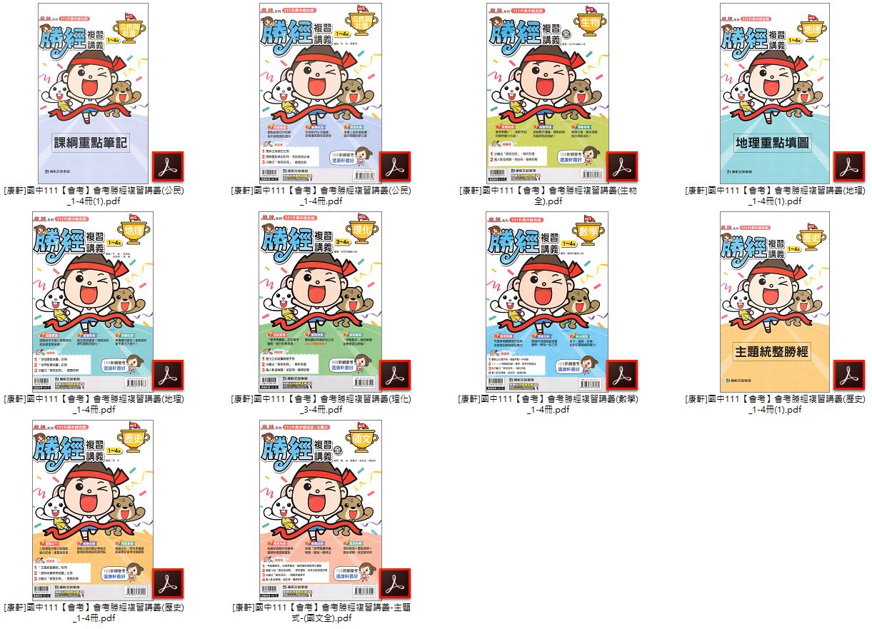 110年國中會考 康軒 會考勝經 總複習講義 全科目 講義光碟
